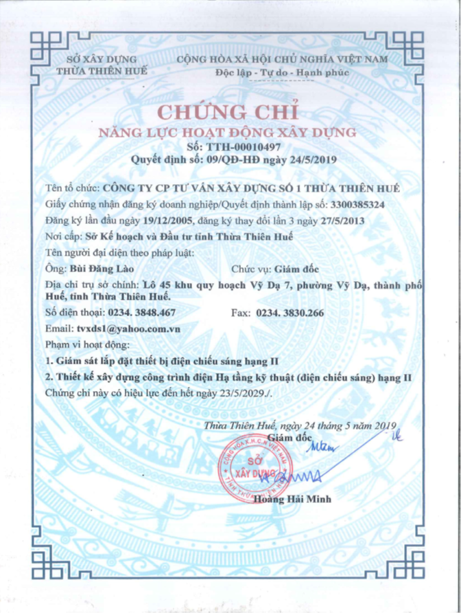 Chứng chỉ năng lực hoạt động xây dựng hạ tầng kỹ thuật hạng II