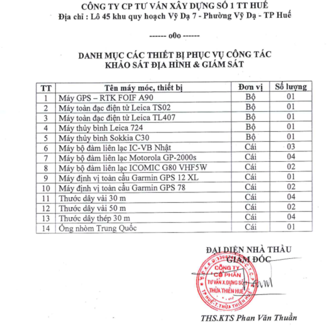Danh mục các thiết bị phục vụ công tác khảo sát địa hình và giám sát